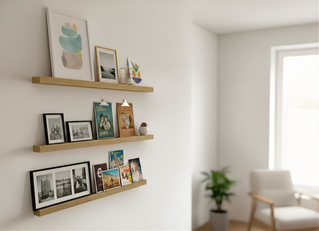 Egal, ob Familienfotos, Urlaubserinnerungen, Kunstwerke oder andere Bilder, meine Bilderleisten bieten eine elegante Lösung. Mit ihrer natürlichen Schönheit und hochwertigen Verarbeitung sind sie nicht nur funktional, sondern auch ein stilvolles Dekorationselement für Ihre Wand.