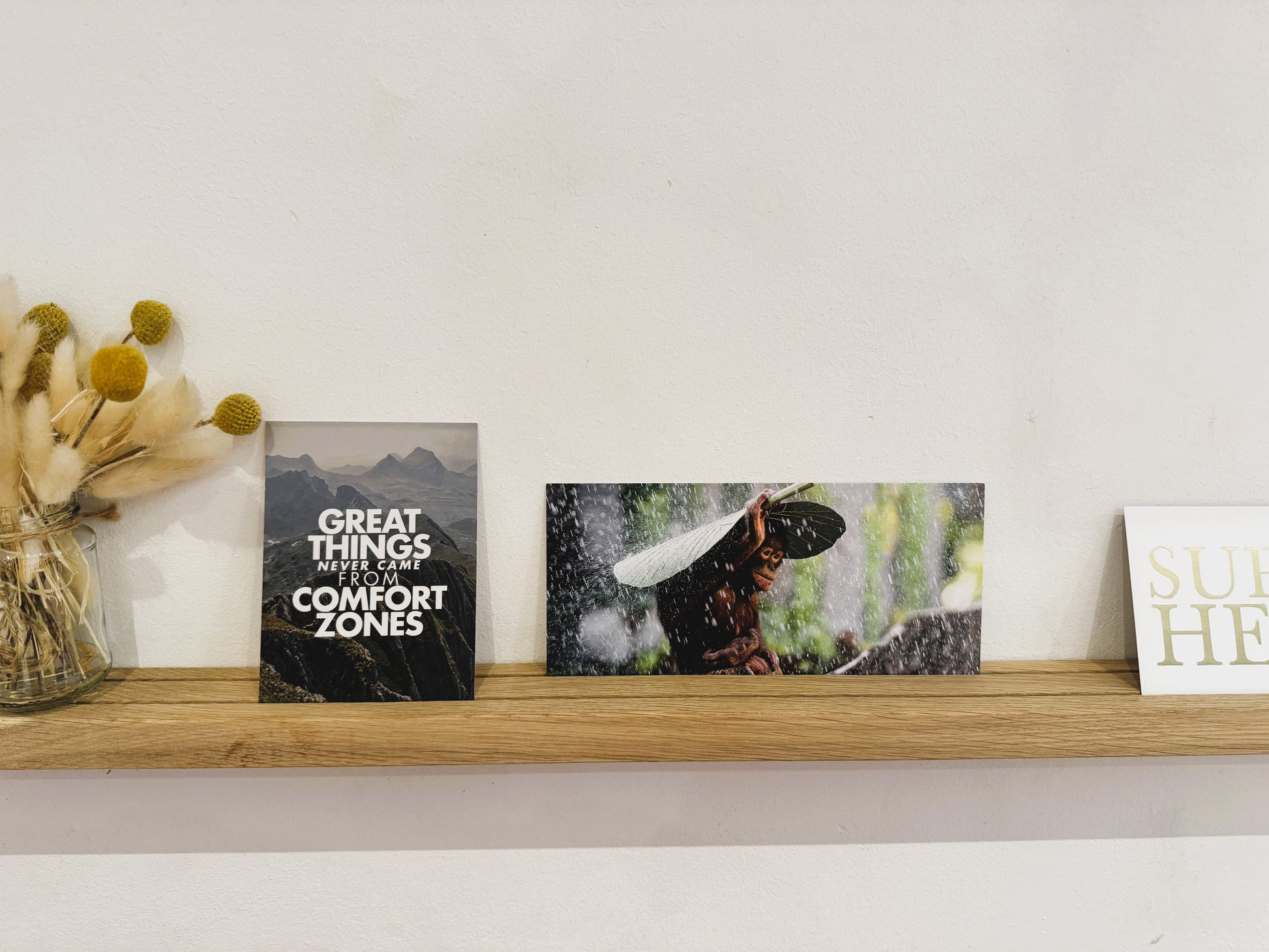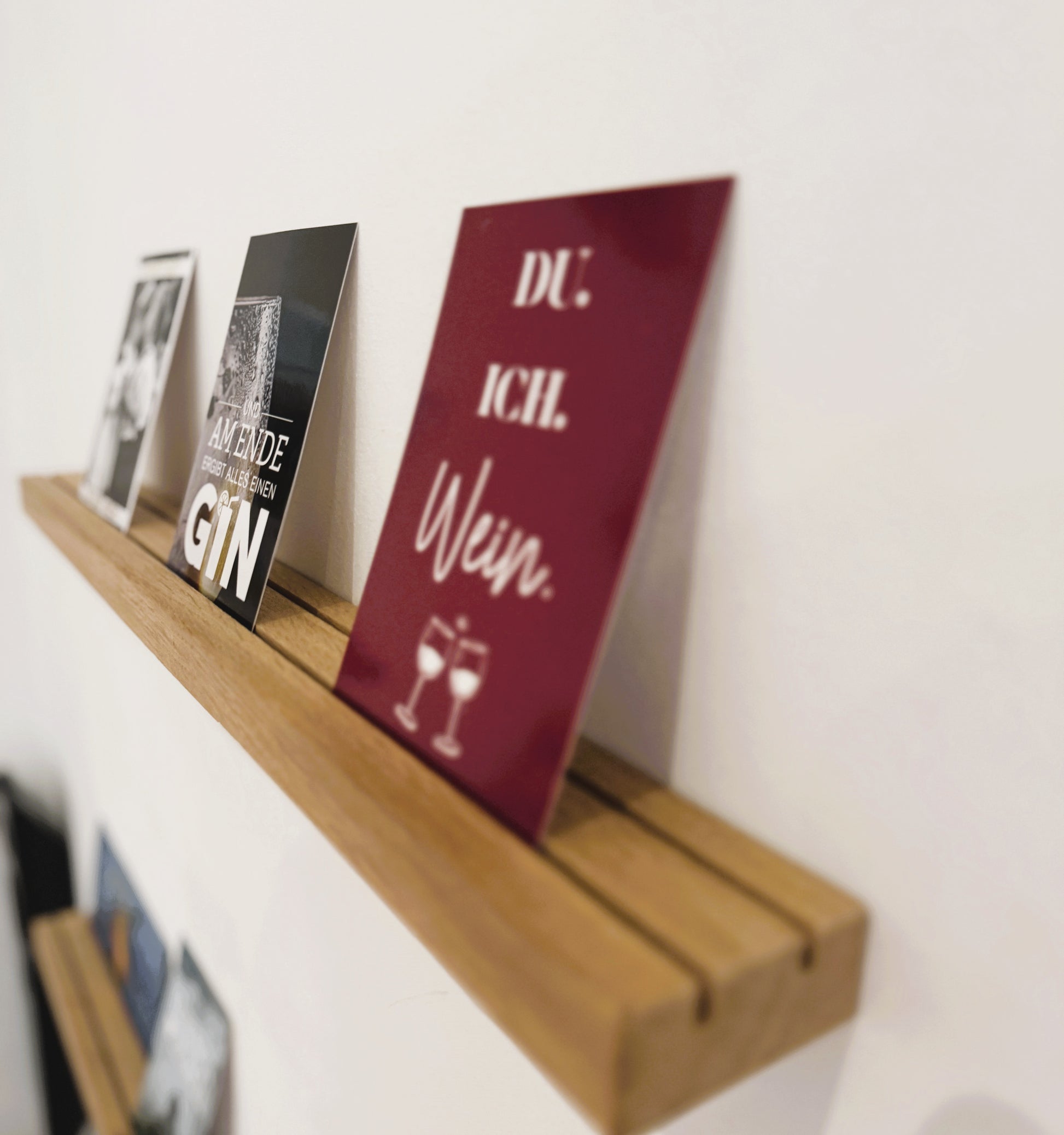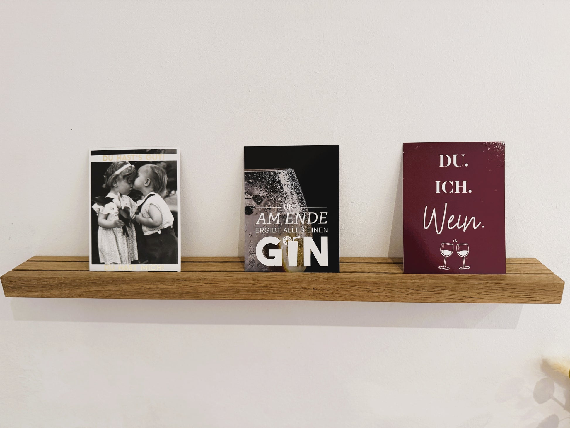 Unsere Eichenleiste für Fotos und Bilder ist die perfekte Lösung, um Ihre Lieblingspostkarten und Bilder stilvoll zu präsentieren. Hergestellt aus hochwertigem, naturbelassenem Eichenholz, bietet diese Bilderleiste nicht nur eine ästhetisch ansprechende Optik, sondern auch eine robuste und langlebige Konstruktion.