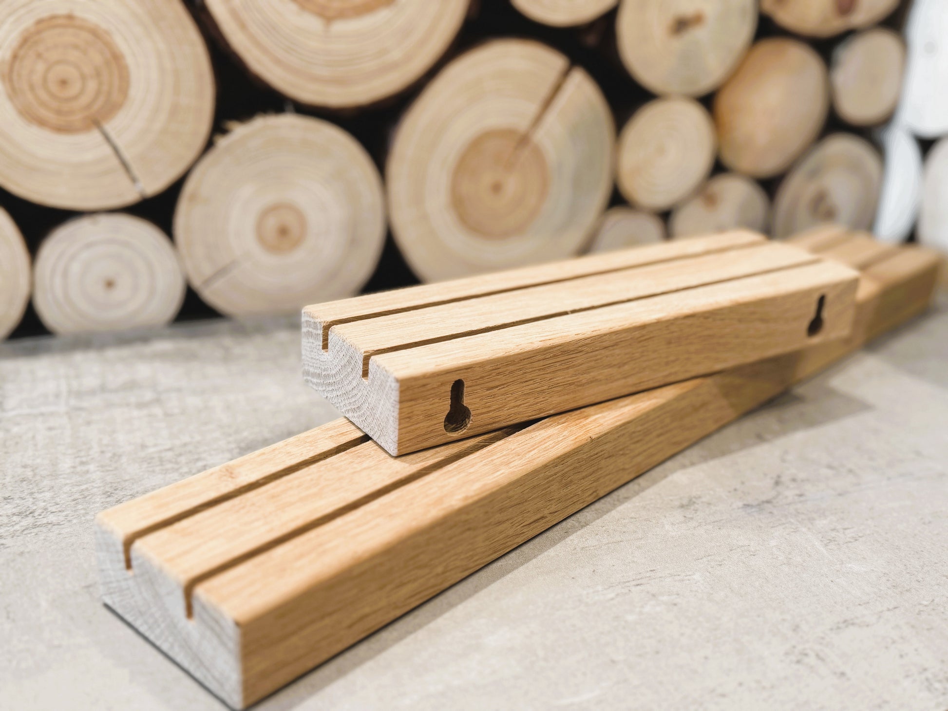 Die Leiste besteht aus unbehandeltem Eichenholz, das seine natürliche Schönheit und Farbe bewahrt und sich harmonisch in jede Einrichtung einfügt.