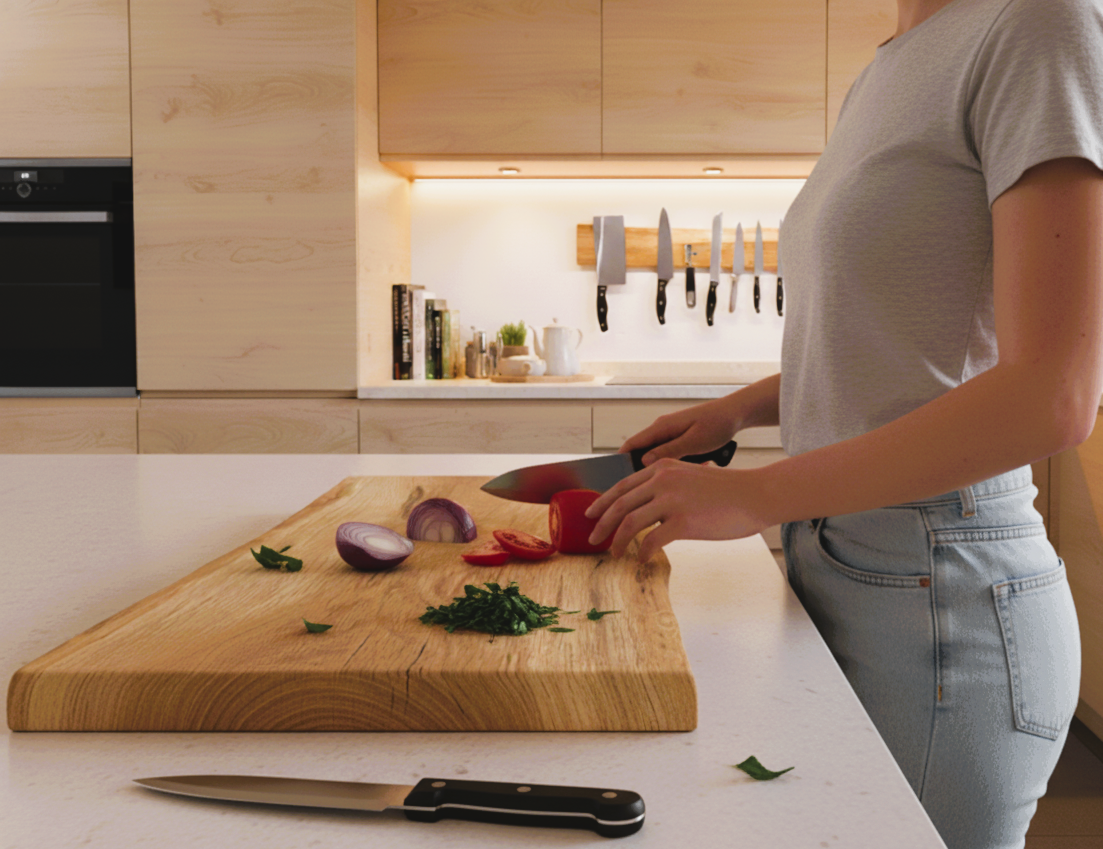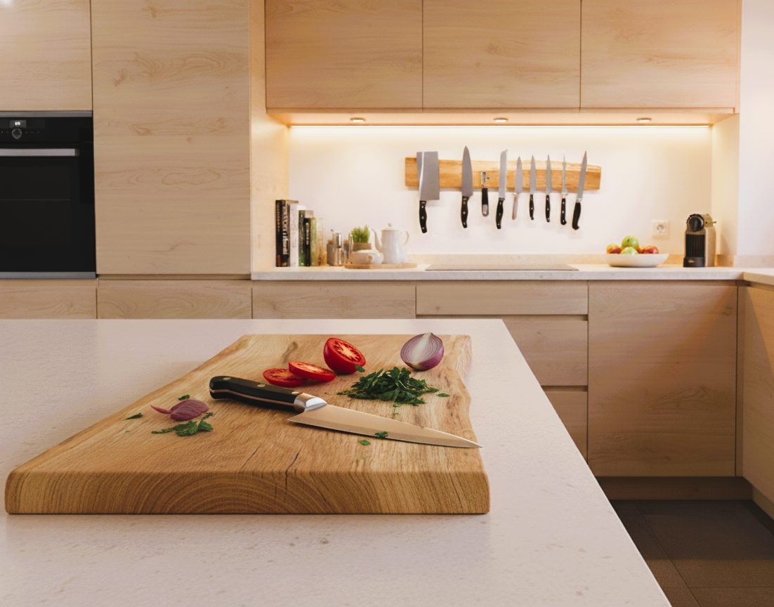 - Gelegentlich mit einem lebensmittelechten Holzöl nachölen (z. B. Leinöl oder spezielles Schneidebrett-Öl)