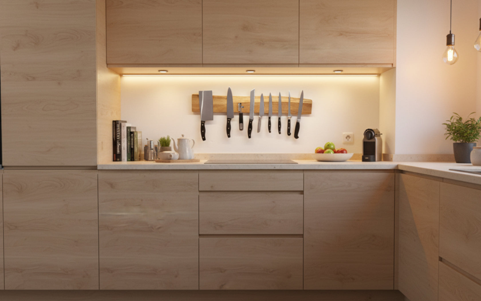 Unsere magnetische Messerleiste vereint natürliche Eleganz mit handwerklicher Präzision.